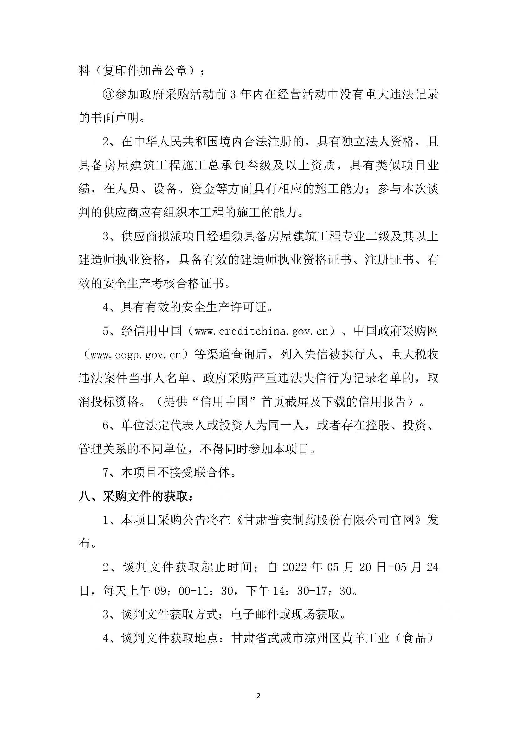 甘肅普安制藥股份有限公司15T/h鍋爐建設項目鍋爐房、管溝施工競爭性談判公告