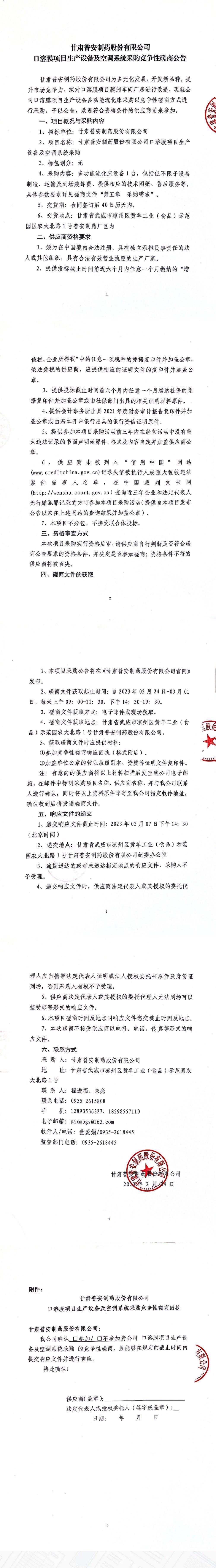 甘肅普安制藥股份有限公司口溶膜項(xiàng)目生產(chǎn)設(shè)備及空調(diào)系統(tǒng)采購(gòu)競(jìng)爭(zhēng)性磋商公告