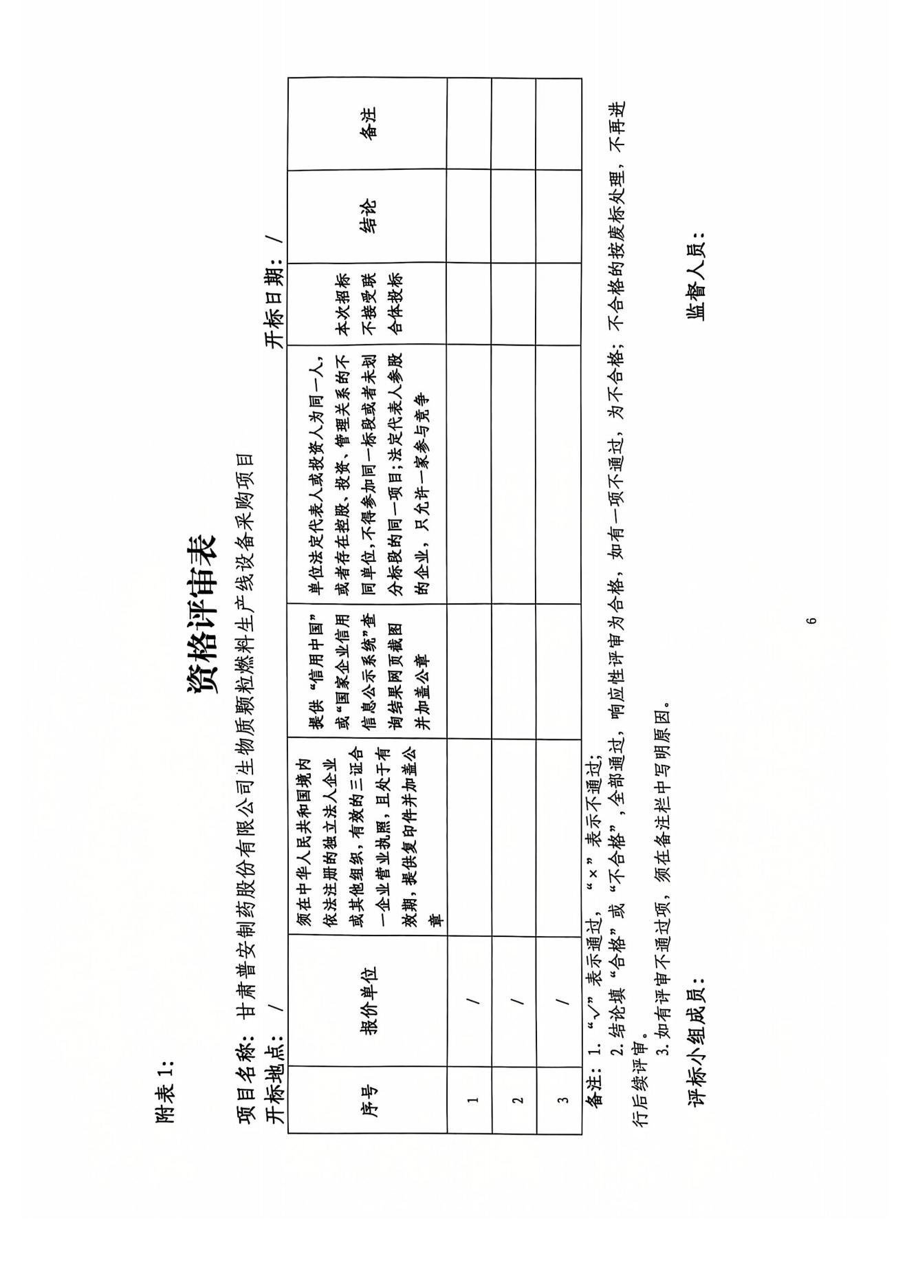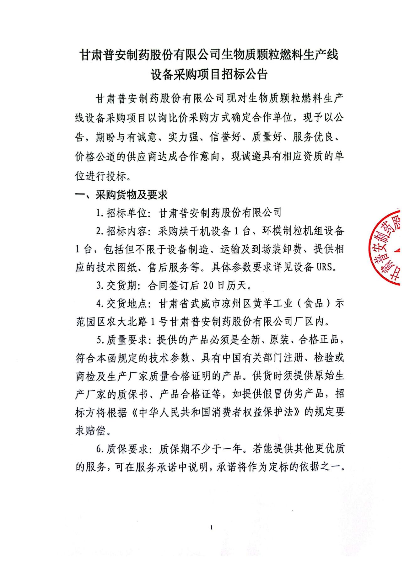 甘肅普安制藥股份有限公司生物質(zhì)顆粒燃料生產(chǎn)線設(shè)備采購項(xiàng)目