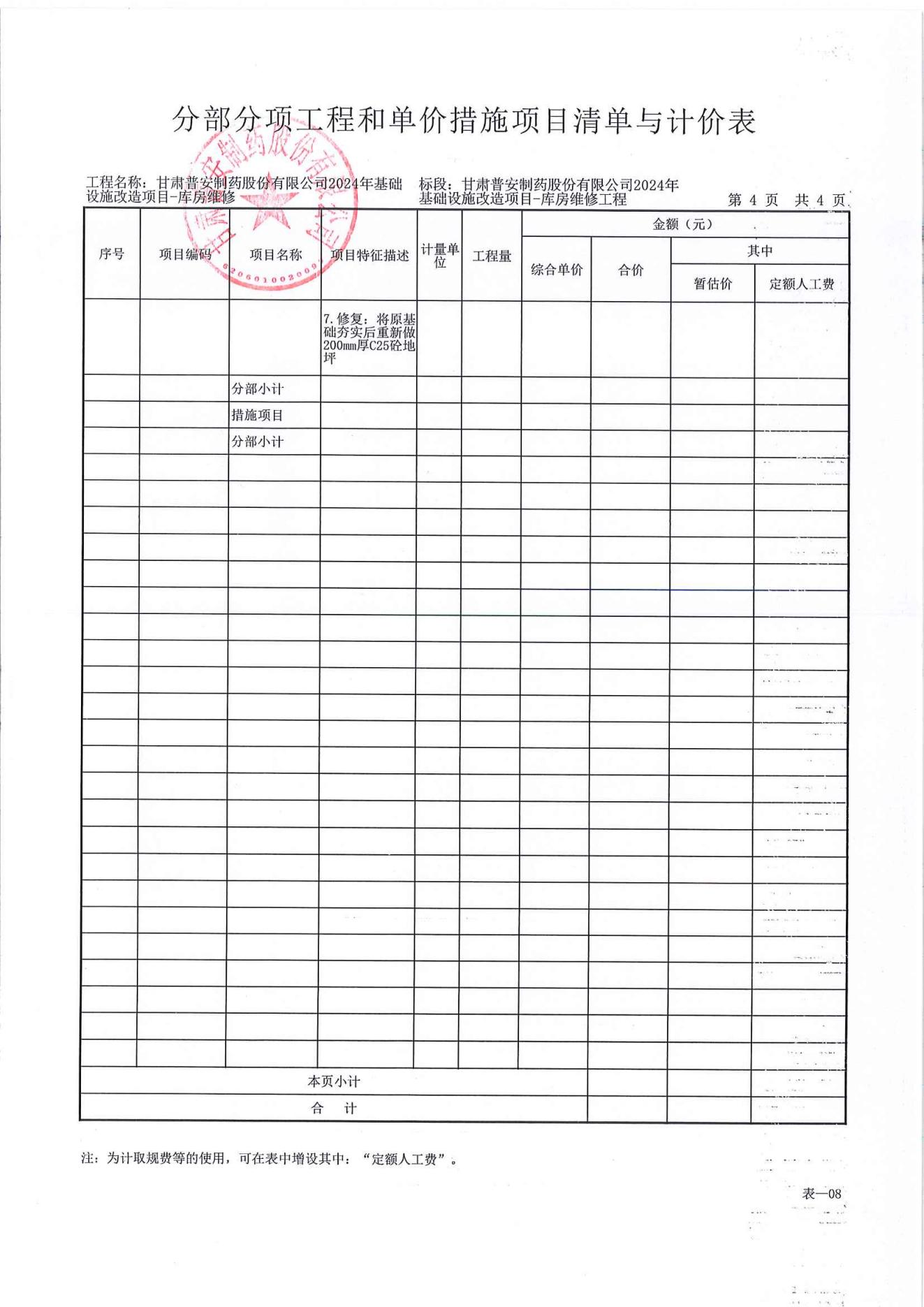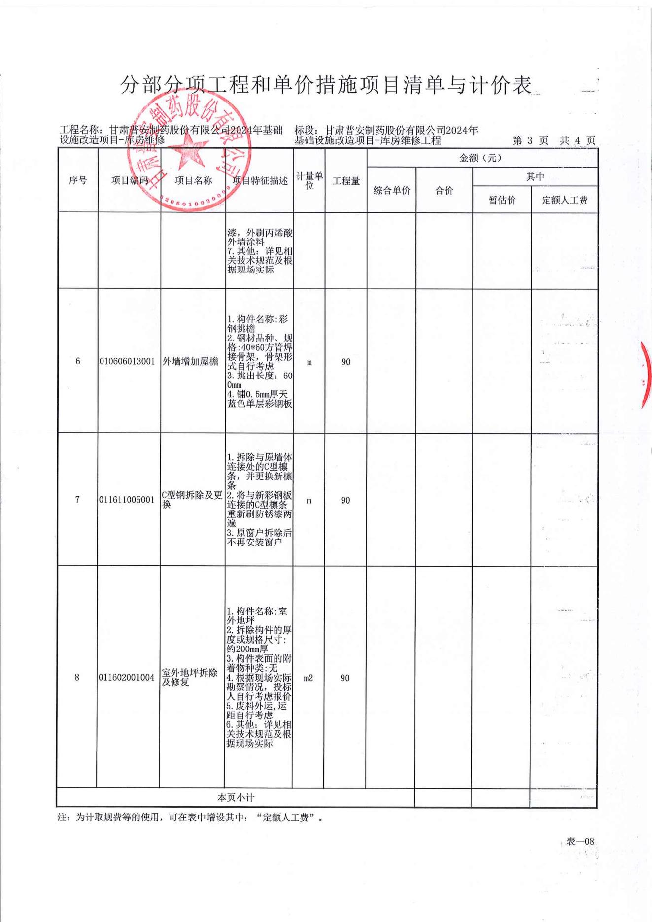 甘肅普安制藥股份有限公司2024年基礎設施改造項目-庫房維修工程施工招標公告