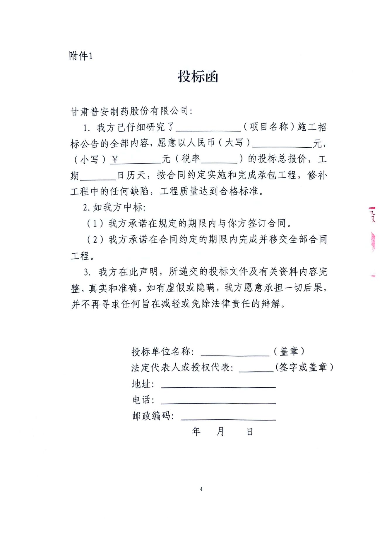 甘肅普安制藥股份有限公司2024年基礎(chǔ)設(shè)施改造項目-廠區(qū)西側(cè)圍網(wǎng)工程招標(biāo)公告