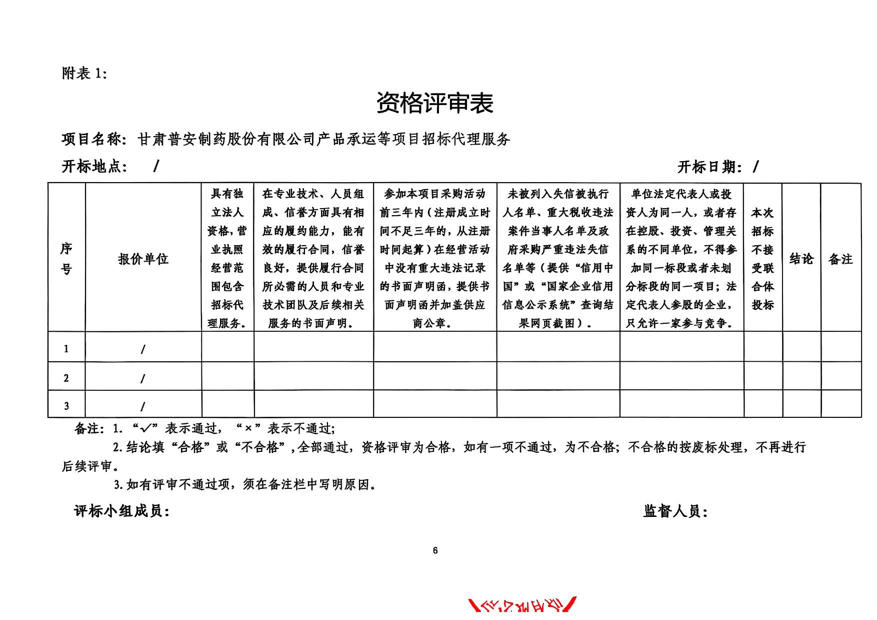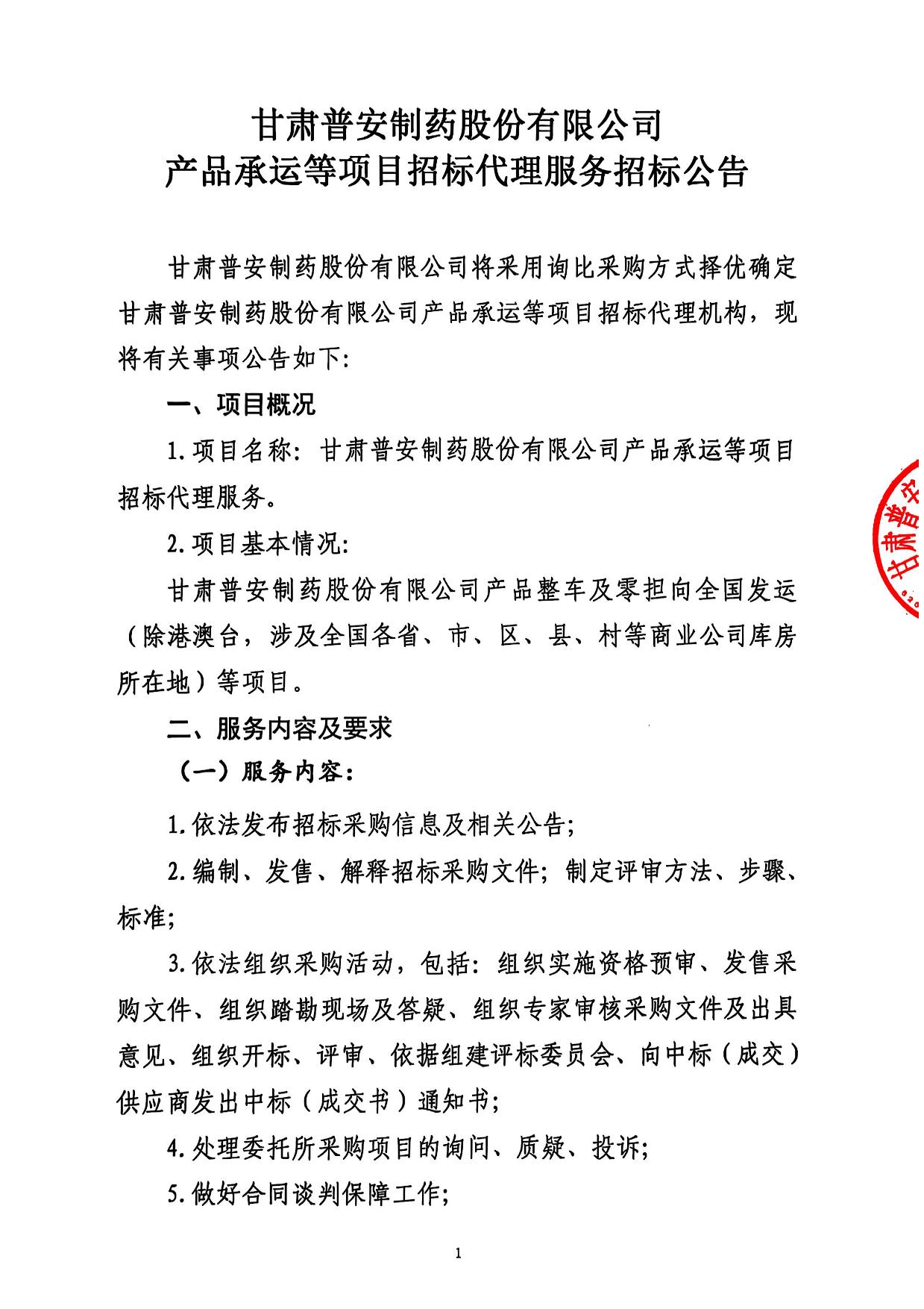 甘肅普安制藥股份有限公司產(chǎn)品承運等項目招標代理服務(wù)招標公告