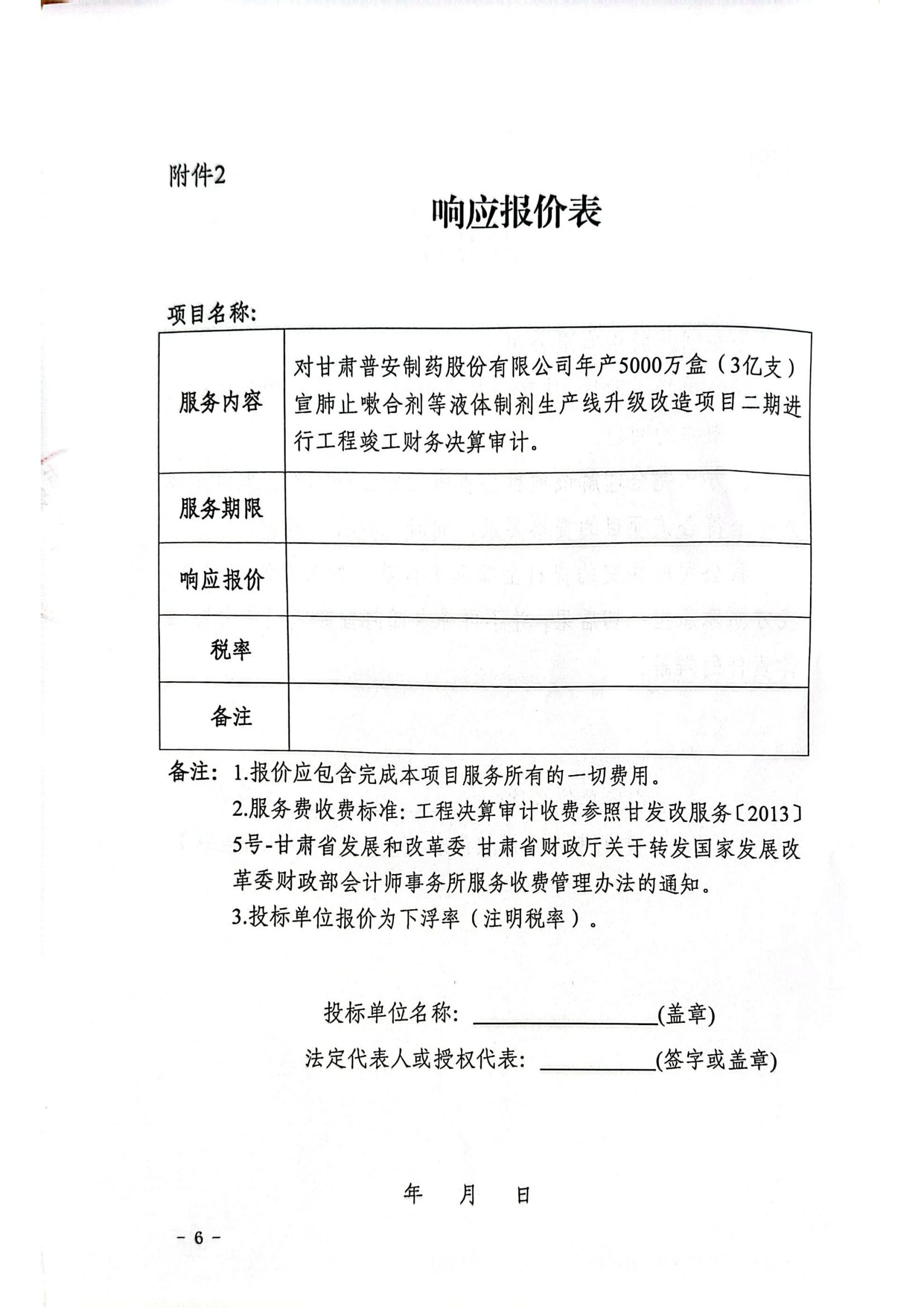 甘肅普安制藥股份有限公司年產5000萬盒宣肺止嗽合劑等液體制劑生產線升級改造項目二期竣工決算審計服務招標公告